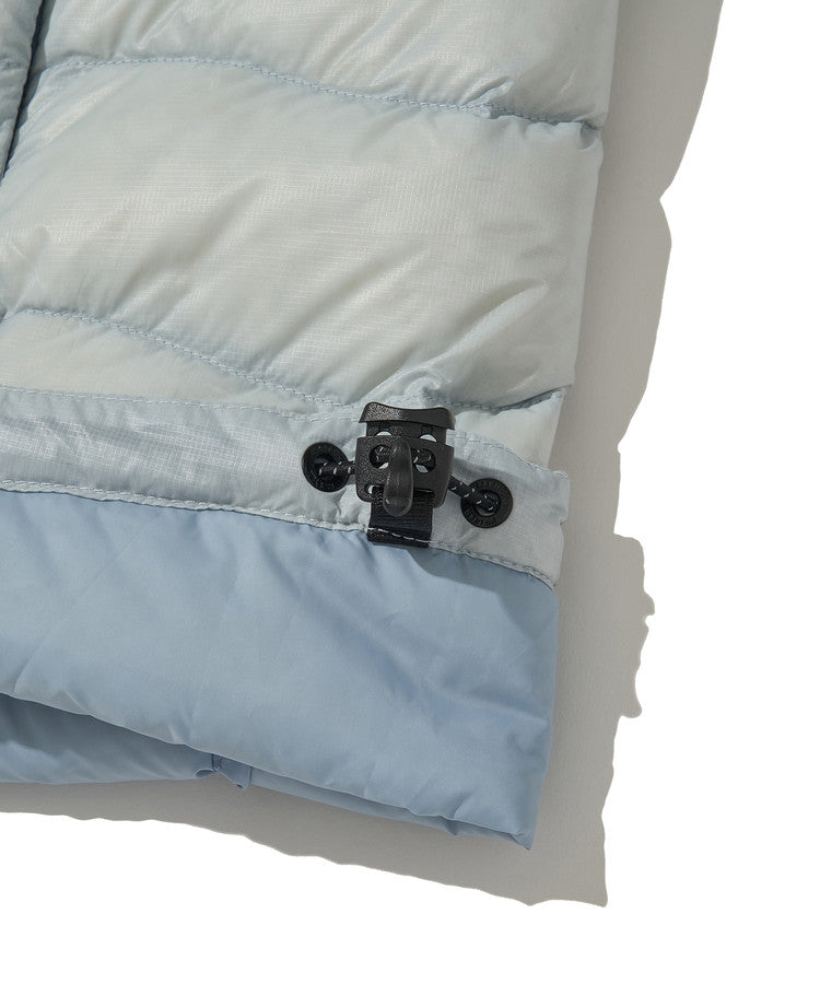 Made with PERTEX® QUANTUM recycled nylon 10D ripstop (26gsm), this lightweight down jacket is designed to handle shifting weather, outdoor activity, and daily wear alike. The shell fabric is both windproof and water-repellent, while the insulation uses DIVO duck down (80% down / 20% feather, 700 fill power) for warmth without excess weight. Finished with YKK zippers and Woojin Plastic hardware, it balances reliable construction with packability, folding neatly into a dedicated pouch for easy transport.